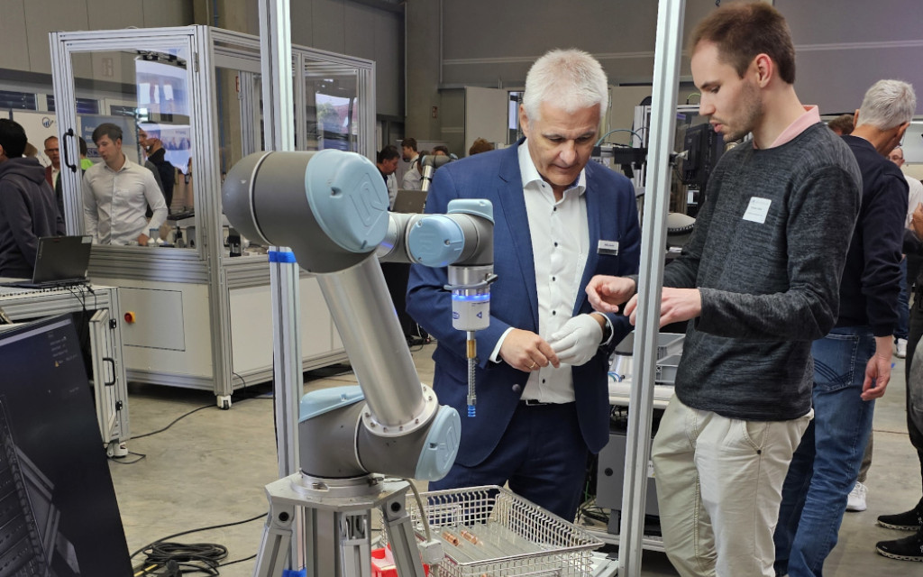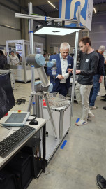 Live vor Ort konnten sich die Besucher einen Eindruck unserer Lichtfeldkamera machen. Dieses System demonstrierte, wie sich selbst hochglänzende Oberflächen zuverlässig erkennen und die Positionen im Raum bestimmen lassen. Dank der Lichtfeldtechnologie erfassen wir die exakte 3D-Form und Lage der Teile – robust, schnell und zuverlässig. Damit können Bin-Picking-Systeme auch sicher solche Objekte greifen.
