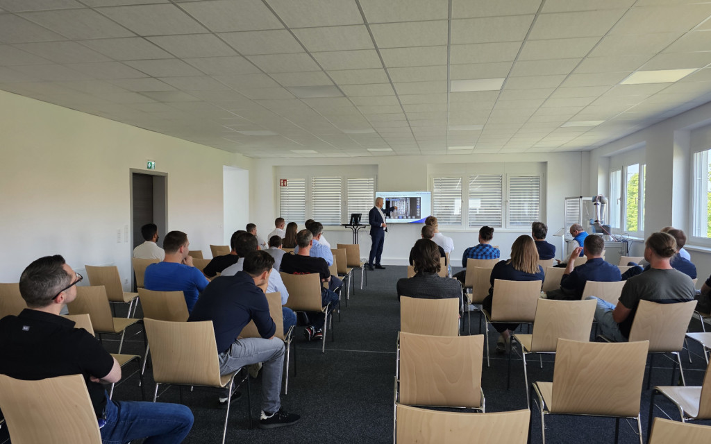 Am ersten Tag hielt unser CEO Michael Kunze für die Besucher einen Vortrag. In seiner Keynote stellte er die physikalischen Grundlagen, umgesetzte Use-Cases und Potenziale des Lichtfeldtechnologie vor – von der Lichtstrahlerfassung bis zur Anwendung im automatisierten Greifprozess.